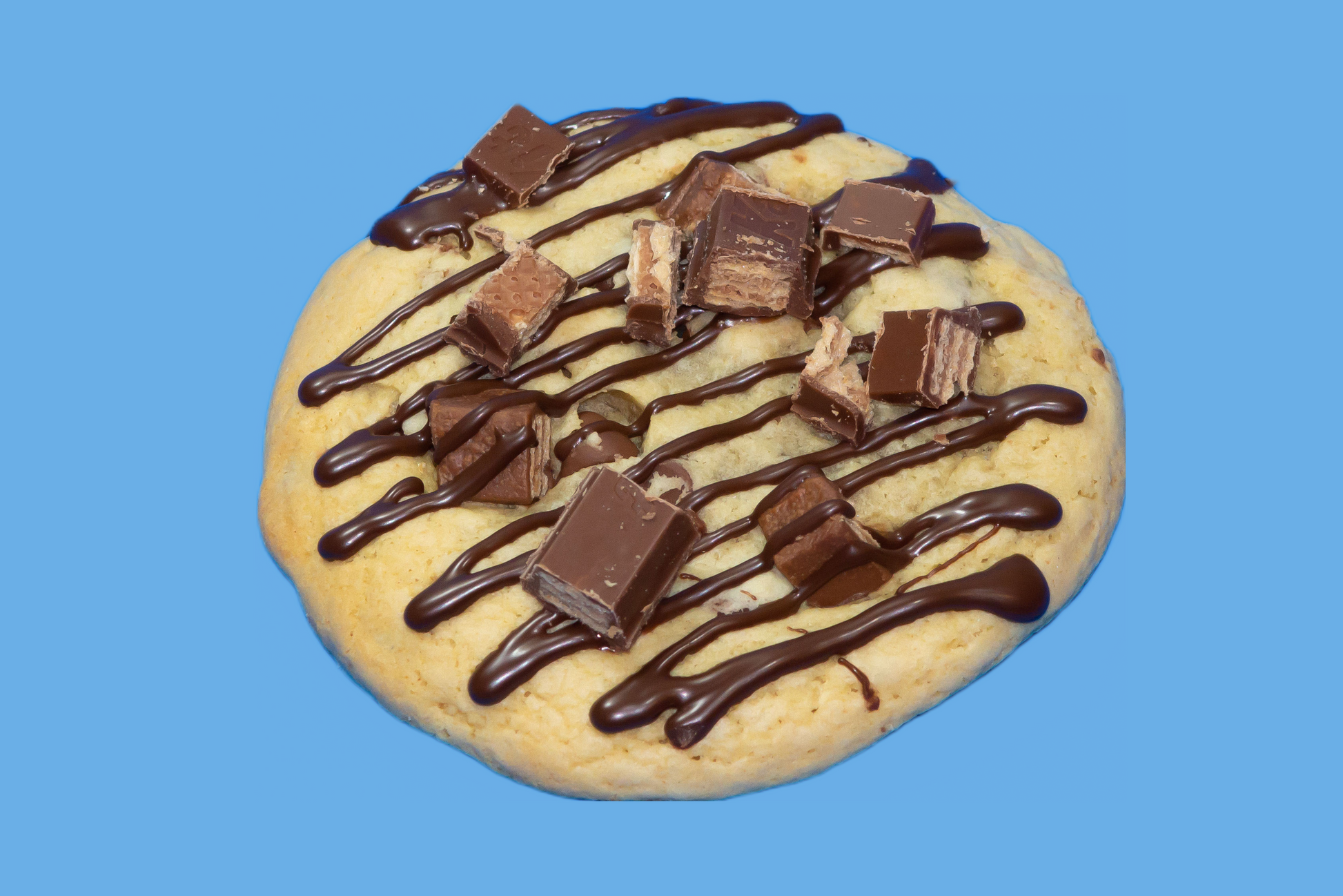 "The Break Up"- A delicious soft cookie with milk chocolate chips baked with KitKat Chocolate in the mix! Topped with chocolate drizzle and KitKat chocolate pieces.